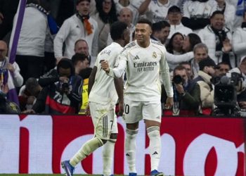 Merayakan Keberhasilan - Penyerang Tottenham Dominic Solanke (kiri) merayakan keberhasilannya mencetak gol ke gawang Manchester City pada pertandingan Liga Inggris...