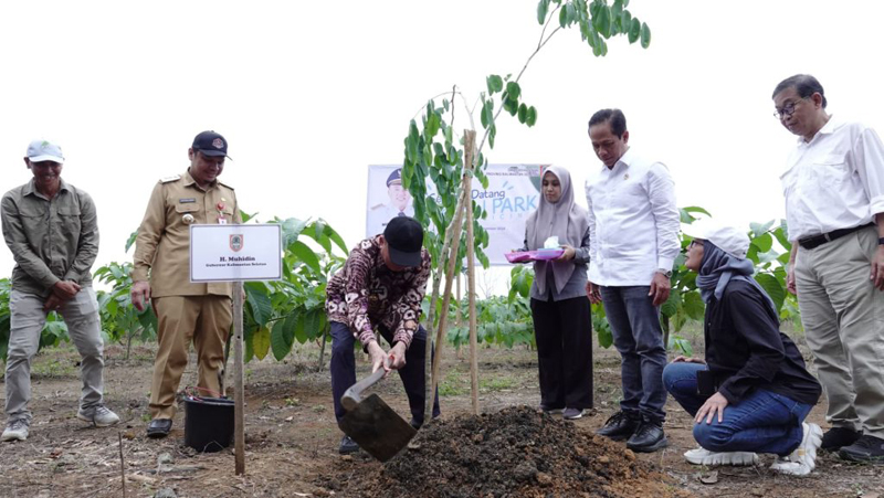 GUBERNUR Kalimantan Selatan, H Muhidin ketika menanam pohon penghijauan di kawasan Central Park Batulicin antara lain disaksikan Menteri LH RI, Hanif Faisol Nurrofiq dan pejabat Forum Koordinasi Pimpinan Daerah (Forkopimda) Kalsel.
