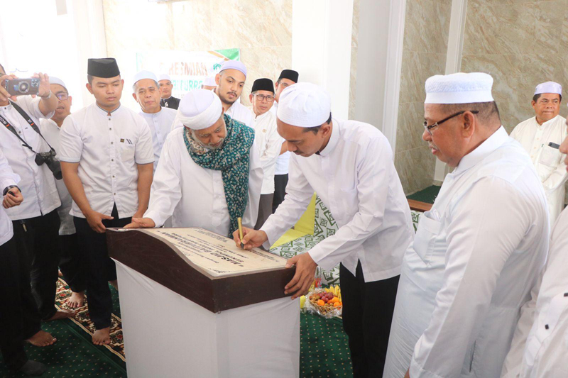 MARTAPURA- Masjid Baiturrahman yang berlokasi di Komplek Sekumpul Indah, Kecamatan Martapura diresmikan Bupati Banjar H Saidi Mansyur. Peresmian ditandai dengan penandatanganan prasasti oleh Bupati Saidi Mansyur dan penasihat masjid Habib Ali Al Idrus.