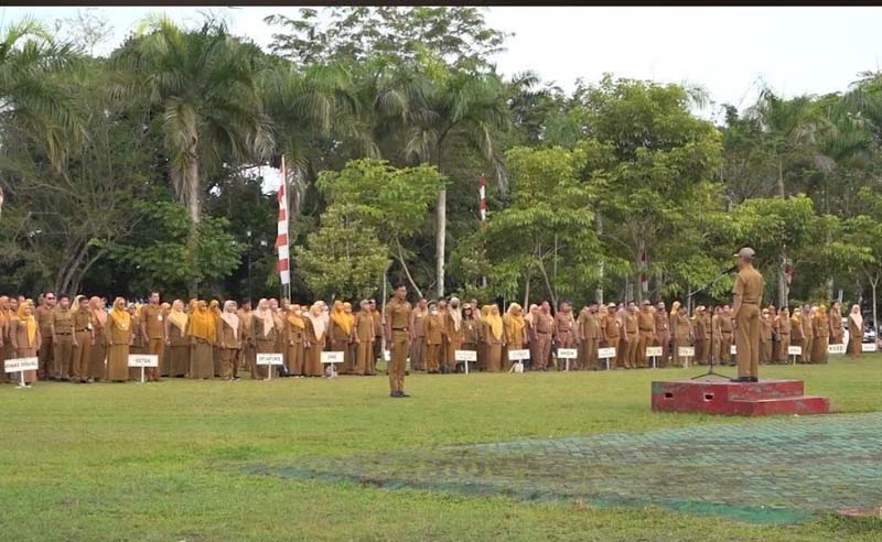 TANJUNG- Kepala Dinas Sosial (Dinsos) Kabupaten Tabalong H Rusmadi memimpin Apel Gabungan lingkup Pemerintahan Kabupaten (Pemkab) di Halaman Pendopo Bersinar, Senin (6/1).Dalam sambutannya, Rusmadi mengatakan bahwa dirinya sebentar lagi akan memasuki purna tugas, maka dari itu ia menyampaikan capaian dan realisasi anggaran Dinsos selama tahun 2024.