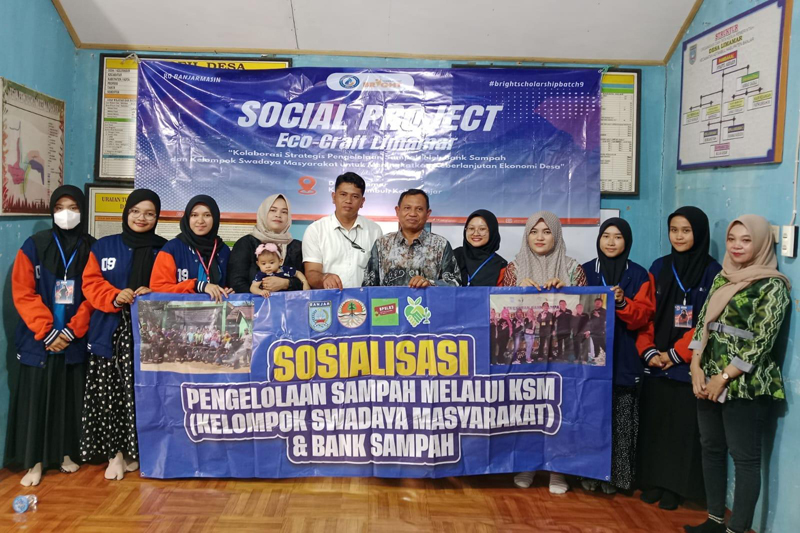 MARTAPURA- Pemerintah Kabupaten Banjar melalui Dinas Perumahan Rakyat, Kawasan Permukiman dan Lingkungan Hidup (DPRKPLH) sosialisasi pengelolaan sampah sekaligus membentuk Bank Sampah dan Kelompok Swadaya Masyarakat (KSM) Pengelolaan Sampah di Kegiatan Social Project Bright Scholarship.