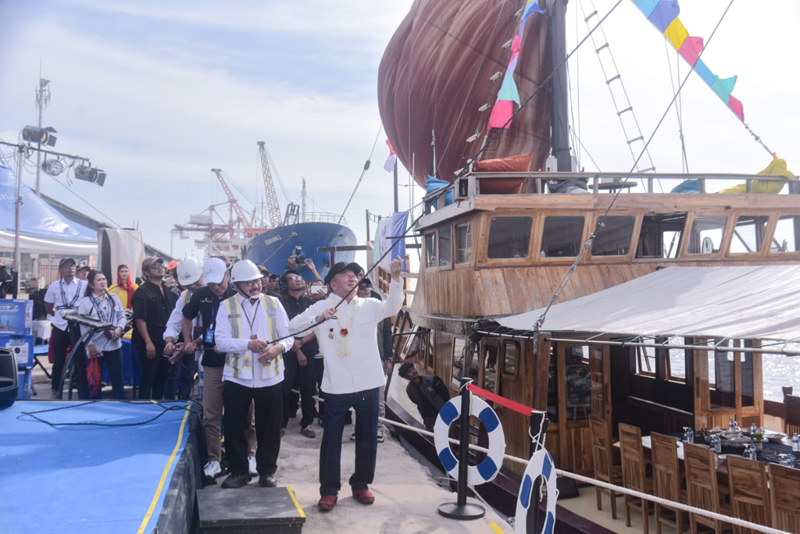 BANJARMASIN – Gubernur Kalsel H. Muhidin didampingi Ketua TP PKK Kalsel Hj Fathul Jannah melaunching Kapal Layar Motor (KLM) Wisata Pinisi “Barito Rover Cruise” di Pelabuhan Penumpang Bandarmasih, Trisakti Banjarmasin, Rabu (12/2).