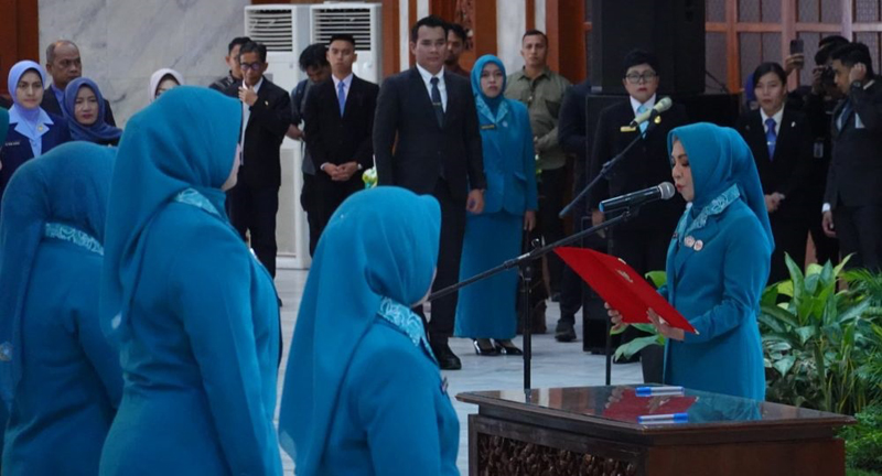 BANJARMASIN – Ketua Tim Penggerak PKK Provinsi Kalimantan Selatan sekaligus Ketua Pembina Posyandu Provinsi Kalsel, Hj Fathul Jannah Muhidin melantik Ketua TP PKK dan Ketua Tim Pembina Posyandu dari 12 Kabupaten/Kota se-Kalimantan Selatan periode 2025-2030, di Gedung Mahligai Pancasila, Banjarmasin, Rabu (05/02) siang.