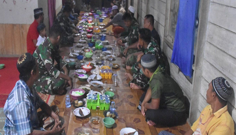 KOTABARU-Satuan Tugas (Satgas) Tentara Manunggal Membangun Desa (TMMD) ke-123 menggelar, buka puasa bersama warga Desa Talusi sebagai bagian dari upaya mempererat hubungan dengan masyarakat.