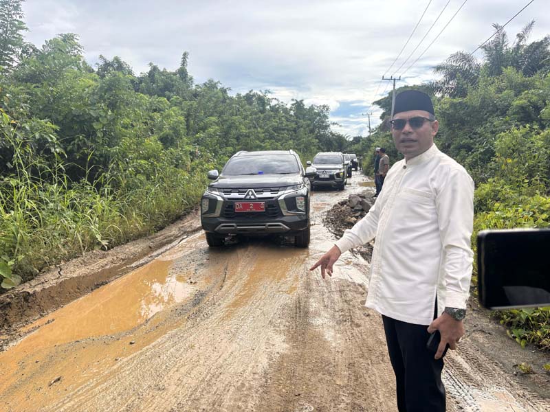 KOTABARU – Wakil Bupati Kotabaru Syairi Mukhlis, bersama rombongan meninjau secara langsung kondisi jalan rusak di area kecamatan Sampanahan, Selasa (11 /03/ 2025).