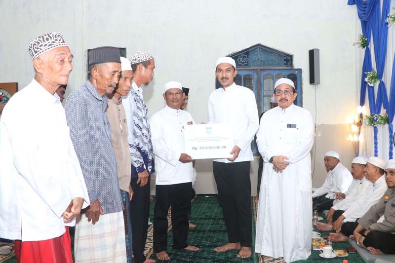 Pada kesempatan ini juga dilakukan penyerahan bantuan hibah bidang keagamaan kepada Yayasan Nurul Qariyah Rp 200 juta, bantuan keuangan bersifat khusus kepada desa dalam rangka pembangunan dan perbaikan sarana dan prasarana Masjid Abirul Islam Rp 50 juta.