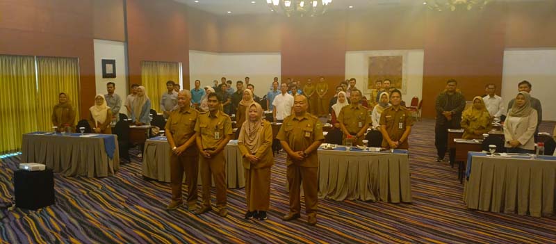 Sekda Tabalong Hj Hamida Munawarah, Kepala Dinas PUPR Wibawa Agung Subrata, Kepala Disperkim Erfin Nirza Siregar dan seluruh tamu undangan menggelar Forum Jasa Konstruksi 2025.(foto:mb/yan)