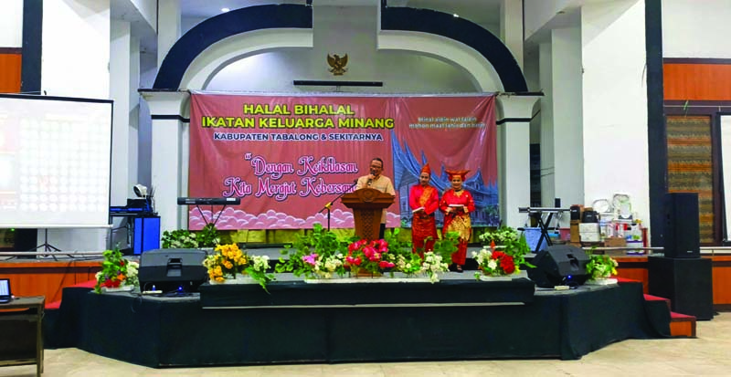 TANJUNG – Bupati Tabalong, H Muhammad Noor Rifani, menghadiri acara Halal Bihalal yang digelar oleh Ikatan Keluarga Minang di Gedung Sarabakawa.Dalam sambutannya, Bupati menyampaikan ucapan selamat Hari Raya Idul Fitri dan rasa syukur karena bisa berdiri disini pada hari ini.
