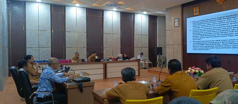 Dinas Koperasi UKM Perindustrian dan Perdagangan (DKUPP) menggelar rapat koordinasi percepatan pembentukan koperasi desa/kelurahan Merah Putih di Aula BPKAD.(foto:mb/yan)