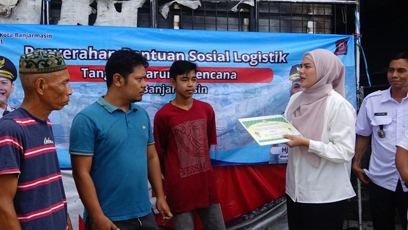 BANJARMASIN – Pasca kebakaran yang menghanguskan dua buah bangunan toko dan rumah di kawasan padat pemukiman kelurahan Sungai Miai, Jumat (6/6) dinihari. Wakil Wali Kota Banjarmasin, Hj. Ananda, didampingi Kadinsos Banjarmasin Nuryadi terjun menyerahkan bantuan sosial logistik kepada para korban kebakaran.