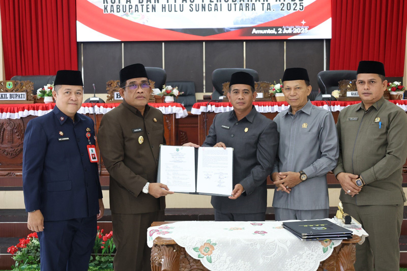 AMUNTAI – Pemerintah Kabupaten Hulu Sungai Utara (HSU) bersama Dewan Perwakilan Rakyat Daerah (DPRD) HSU, akhirnya sepakati Rancangan Peraturan Daerah (Raperda) tentang Rencana Pembangunan Jangka Menengah Daerah (RPJMD) Tahun 2025-2029 menjadi Peraturan Daerah (Perda).