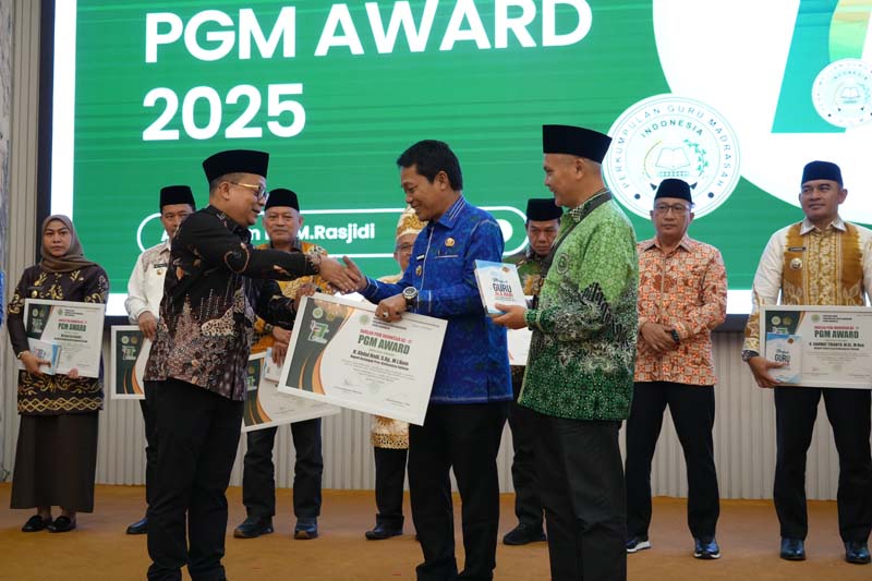 PARINGIN-Bupati Balangan, Abdul Hadi menerima penghargaan dari Perkumpulan Guru Madrasah (PGM) Indonesia dalam ajang PGM Award 2025 yang dirangkai dengan peringatan Hari Lahir (Harlah) ke-17 PGM Indonesia yang berlangsung di Auditorium H. M. Rasjidi, Kementerian Agama RI, Jakarta.
