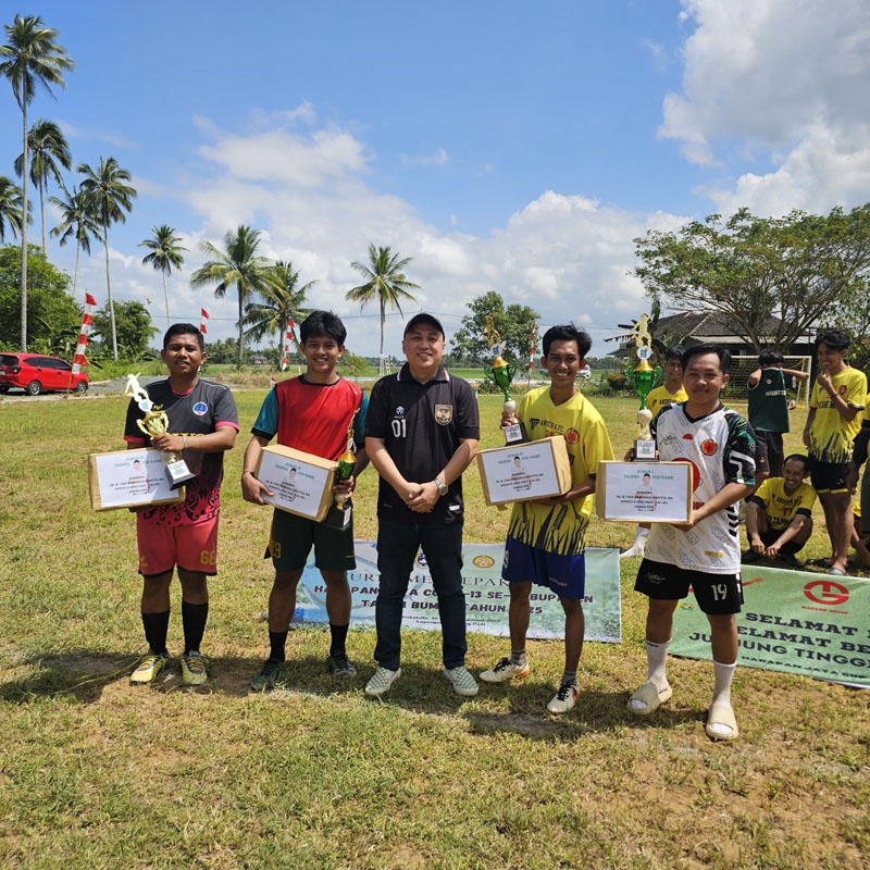 Hadiah trophy dan uang tunai diserahkan dr M Yadi Mahendra Muhyin sebagai awal mula dibukanya turnamen sepak bola usia dini.