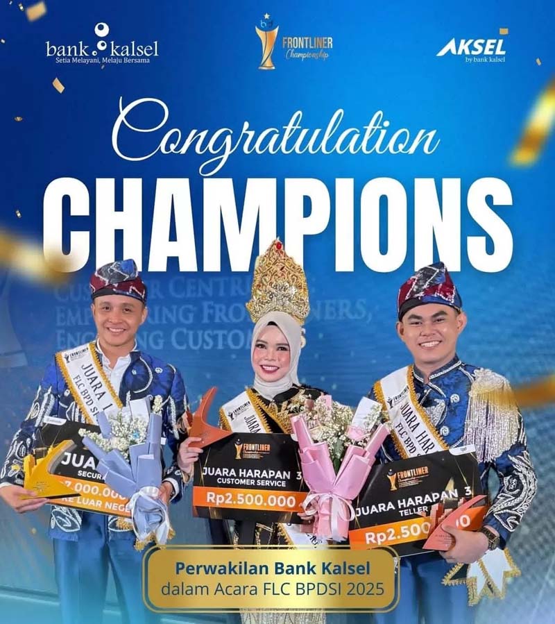 Adapun perwakilan dari Bank Kalsel yakni, Ahmad Rifandi meraih Juara 1 Security, Ibnu Aulia Rahman menyandang juara Harapan 3 Teller, dan Nurunnisa beraih hasil yang sama sebagai Juara Harapan 3 Customer Service.