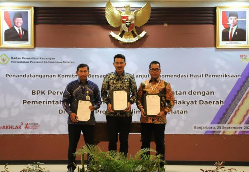 MARTAPURA- Badan Pemeriksa Keuangan (BPK) Perwakilan Provinsi Kalimantan Selatan menggelar penandatanganan komitmen bersama penyelesaian Tindak Lanjut Rekomendasi Hasil Pemeriksaan BPK (TLRHP), di Aula kantornya, Kamis (25/9).