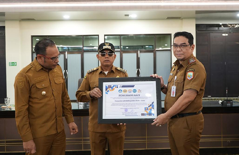 Piagam penghargaan itu diserahkan Sekretaris Daerah Eka Sapruddin kepada Bupati Kotabaru Muhammad Rusli di dampingi Wakil Bupati Syairi Mukhlis di Aula Bamega Setda Kotabaru, Senin (6/10).
