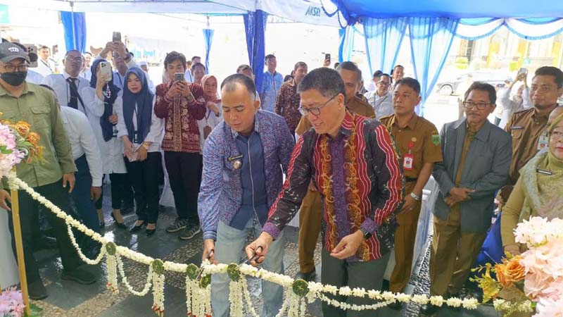 Pemotongan Pita Oleh Wakil Bupati Tabalong Habib Muhammad Taufani Alkaf dan Direktur Utama Bank Kalsel Fachruddin. (foto:mb/yan)