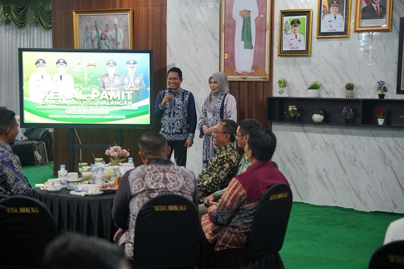PARINGIN-Pemerintah Kabupaten (Pemkab) Balangan, Klimantan Selatan (Kalsel) menyambut Komandan Komando Distrik Militer (Kodim) 1001/HSU-Balangan, baru dengan menggelar acara kenal pamit sekaligus serah terima jabatan dari Letkol Kav Gunantyo Ady Wiryawan kepada Letkol Inf Endra Retno Erowanto, di Kediaman Bupati Balangan, Griya Garuda Maharam, Kecamatan Paringin, pada Jumat (10/10/2025).