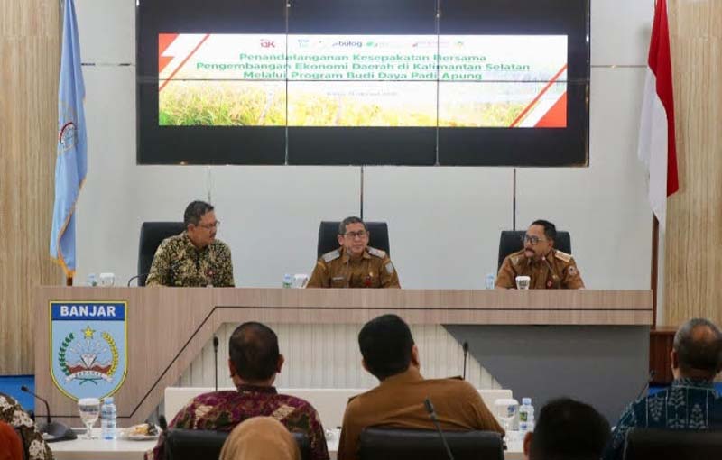 Hal ini ditandai dengan penandatangan komitmen bersama untuk mendukung pengembangan ekonomi daerah melalui program budidaya padi apung di Kabupaten Banjar oleh sejumlah pihak.