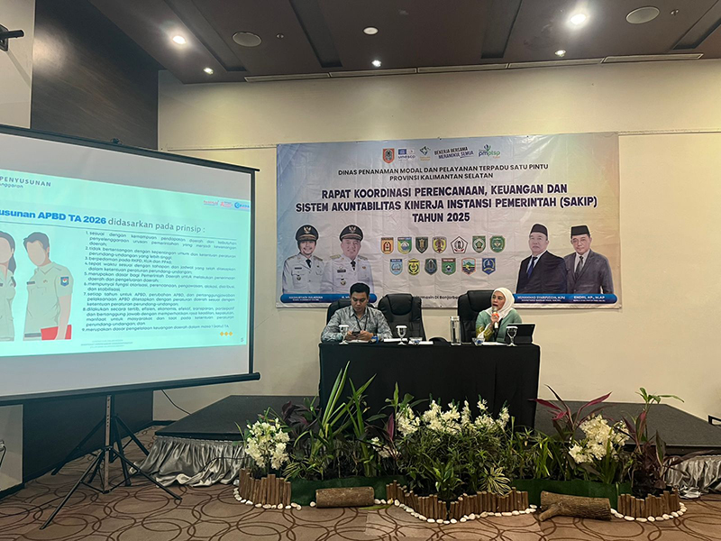 BANJARBARU – Pemerintah Kalimantan Selatan melalui dinas penanaman modal pelayanan terpadu satu pintu (DPMPTSP) menggelar rapat koordinasi bersama DPMPTSP se-Kalsel dalam rangka perencanaan anggaran di salah satu hotel di Kota Banjarbaru, Kamis (16/10).