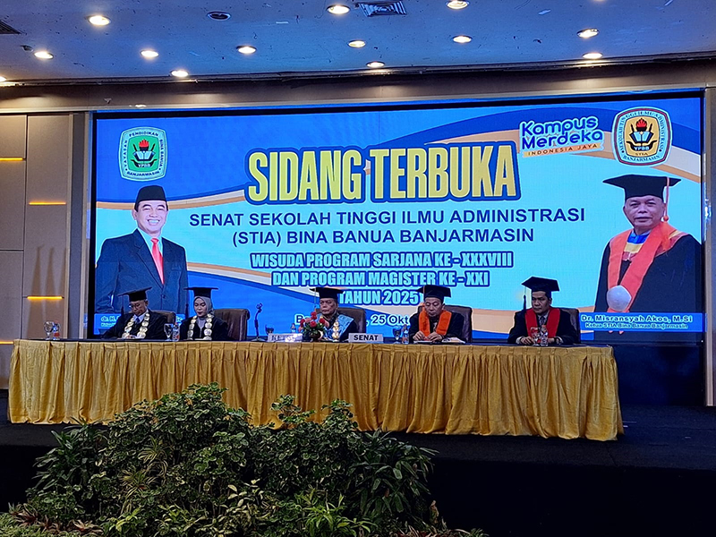 BANJARMASIN – Sekolah Tinggi Ilmu Administari (STIA) Bina Banua Banjarmasin melakukan wisuda Program Sarjana XXXVIII dan Program Magister XXI di Hotel Banjarmasin Internasional (HBI), Sabtu (25/10).