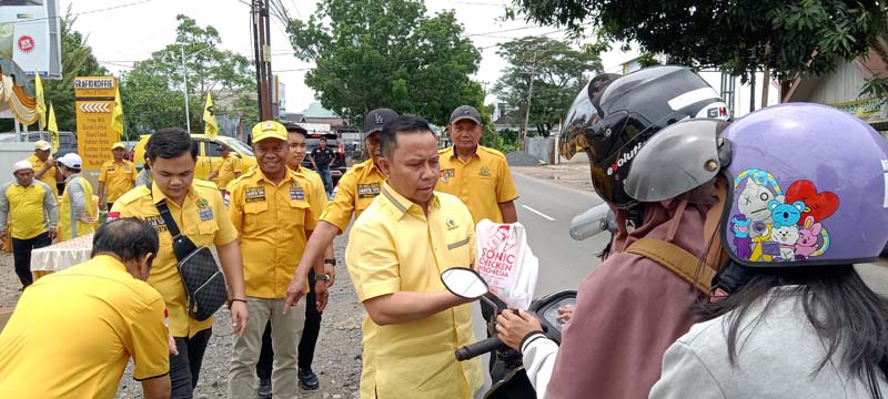 Dalam kesempatan itu, Bambang Heri Purnama bersama Ketua DPD Golkar Tapin H Yamani, juga menyempatkan membagikan bantuan beras kepada puluhan penarik becak yang dilaksanakan DPD Partai Golkar Tapin dalam rangka memeriahkan HUT Partai Golkar ke 61.