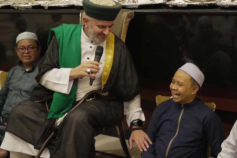 RANTAU,- Penceramah Syekh Ahmad Rouhi Adduhaibi Al-Jailaini dari kota Tripoli Libanon hadiri acara tausiyah bulanan yang di adakan Bupati Tapin H Yamani, bertempat di Kediaman Pribadinya di Tambarangan, Sabtu malam (25/10).