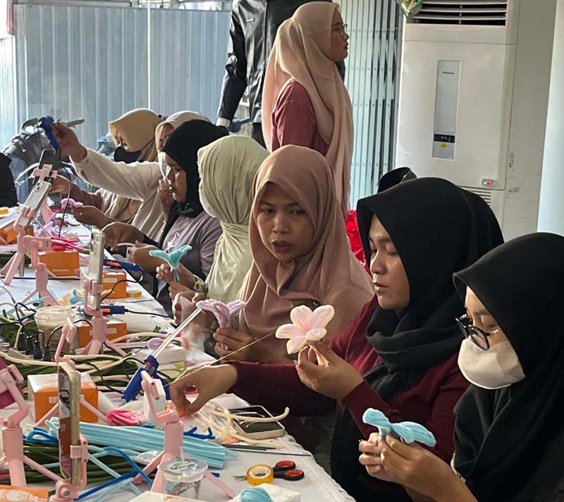 Dalam suasana yang hangat dan penuh semangat, para peserta belajar membuat buket bunga unik dari bahan pipe cleaner sebuah aktivitas sederhana namun sarat nilai kreativitas dan ekspresi diri.