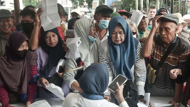 ANTRE – Sejumlah warga lanjut usia (lansia) antre untuk mendaftar dan memperpanjangan program Kartu Layanan Gratis (KLG) pada Hari Bebas Kendaraan Bermotor (HBKB) di kawasan Bundaran HI, Jakarta Pusat, Minggu (2/11). Sejak pagi, warga terutama para lansia antusias mengantre untuk mendaftar maupun memperpanjang Kartu Layanan Gratis (KLG) yang dibuka oleh Pemprov DKI Jakarta.
