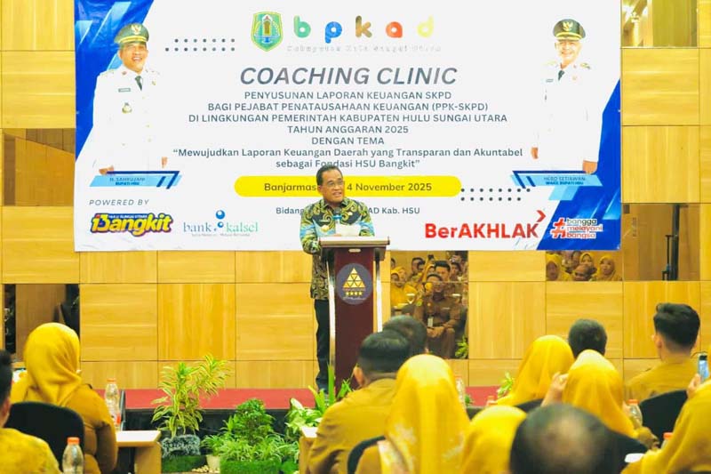 AMUNTAI – Pemerintah Kabupaten Hulu Sungai Utara (HSU) melalui Badan Pengelola Keuangan dan Aset Daerah (BPKAD) menggelar, kegiatan Coaching Clinic Penyusunan Laporan Keuangan SKPD bagi Pejabat Penatausahaan Keuangan (PPK-SKPD) di lingkungan Pemkab HSU Tahun Anggaran 2025.