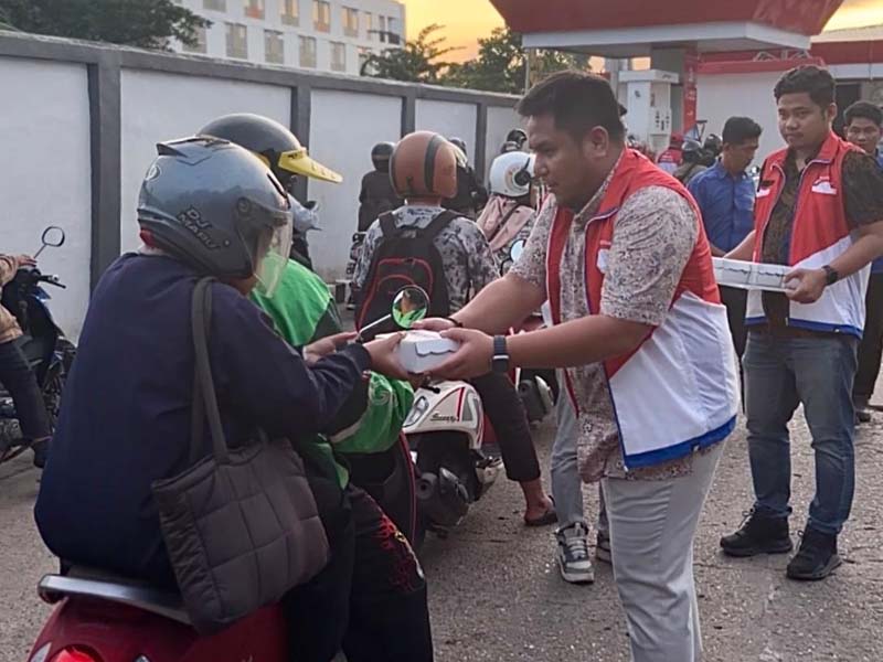 Sales Branch Manager Fuel Kalimantan Selatan, M Raja D Hutabarat saat memberi Apresiasi Pelanggan Setia dengan membagikan snack gratis .ist