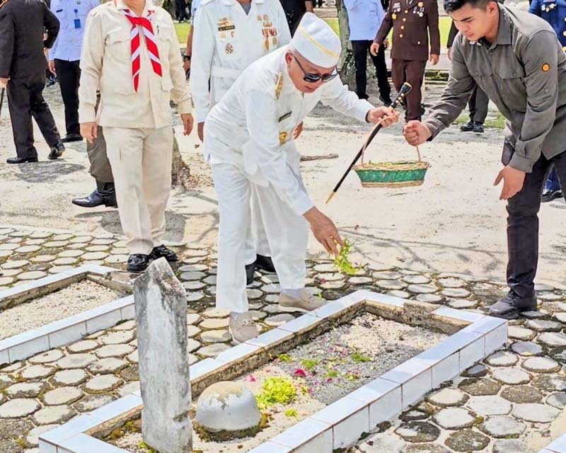 Usai upacara, Gubernur Kalsel, H Muhidin bersama rombongan melaksanakan penghormatan dan tabur bunga di Taman Makam Pahlawan Bumi Kencana, Banjarbaru.