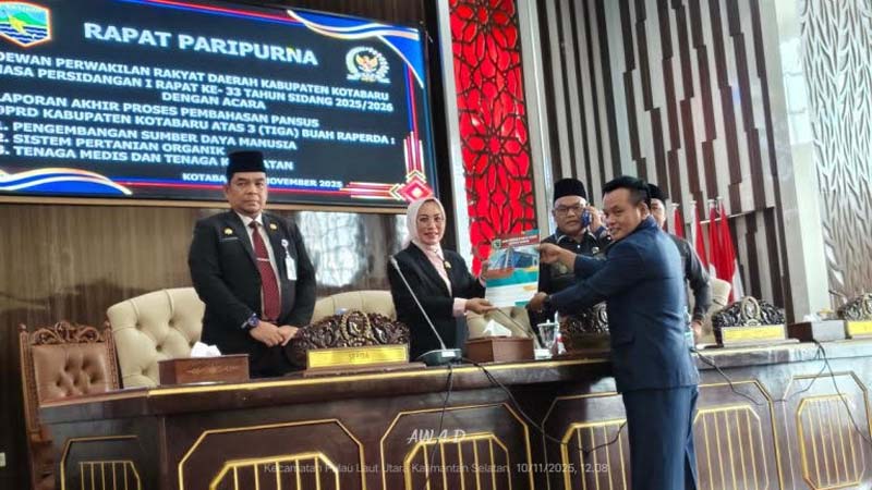 KOTABARU – Dewan Perwakilan Rakyat Daerah (DPRD) Kabupaten Kotabaru menggelar rapat paripurna masa persidangan I rapat ke-33 tahun sidang 2025/2026, yang dipimpin langsung oleh Ketua DPRD Hj. Suwanti, di Gedung DPRD Kotabaru, Senin (10/11/2025).