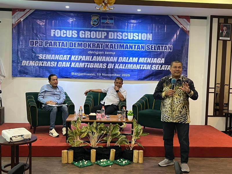 BANJARMASIN – Dewan Pimpinan Daerah (DPD) Partai Demokrat Kalimatan Selatan (Kalsel) menggelar Focus Group Discusion dengan tema ” Semangat kepahlawanan dalam menjaga demokrasi dan kantibmas di Kalsel”.