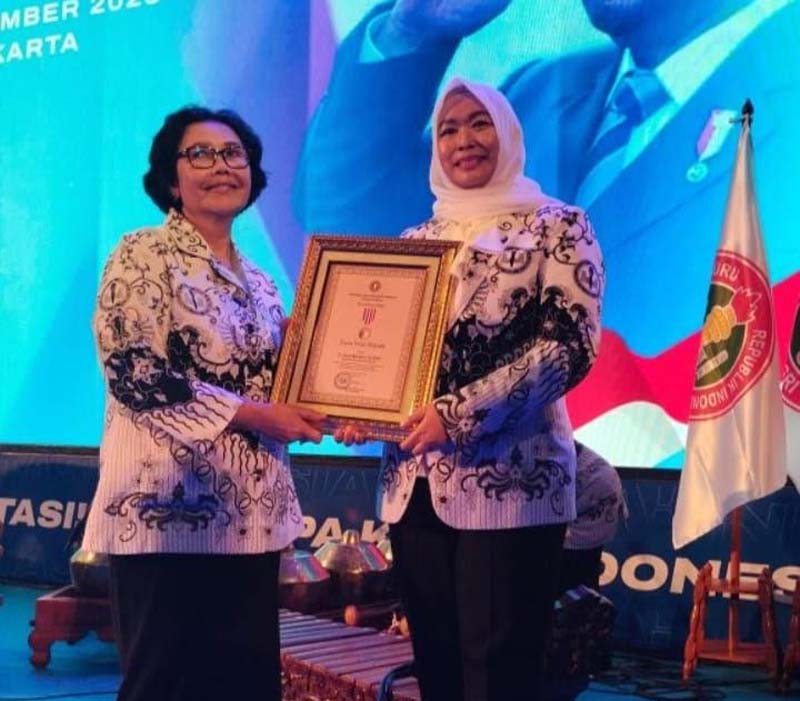 Lencana penghargaan diberikan langsung oleh Ketua Umum PGRI, Prof. Dr. Unifah Rosyidi kepada Bupati Banjar H Saidi Mansyur dalam hal ini diwakili Kepala Dinas Pendidikan (Disdik) Kabupaten Banjar Hj Liana Penny.