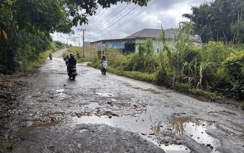 Tari menyebut, jalan ini sudah sangat lama sekali mengalami kerusakan yaitu sekitar dua tahun lebih, tetapi sampai sekarang belum ada perbaikan hanya ada penanganan sementara saja seperti ditambal dengan batu gunung.