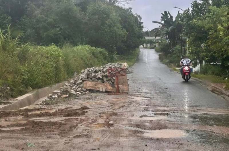 “Tumpukan paving block ini sangat mengganggu pengguna jalan saat ingin melintas, tidak jarang kalau ada mobil dari arah berlawanan salah satunya harus menepi dulu,” kata salah satu pengguna jalan Yanor di Tungkap, Balangan.