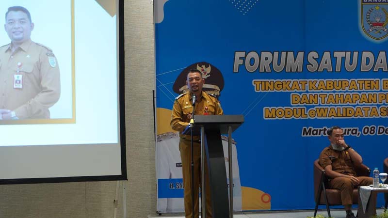 MARTAPURA – Badan Perencanaan Pembangunan, Penelitian dan Pengembangan (Bappedalitbang) Kabupaten Banjar menggelar Forum Satu Data Indonesia Tingkat Kabupaten Tahun 2025, di Sky Convention Center, William Tandiono, Kecamatan Gambut, Senin (8/12) pagi.