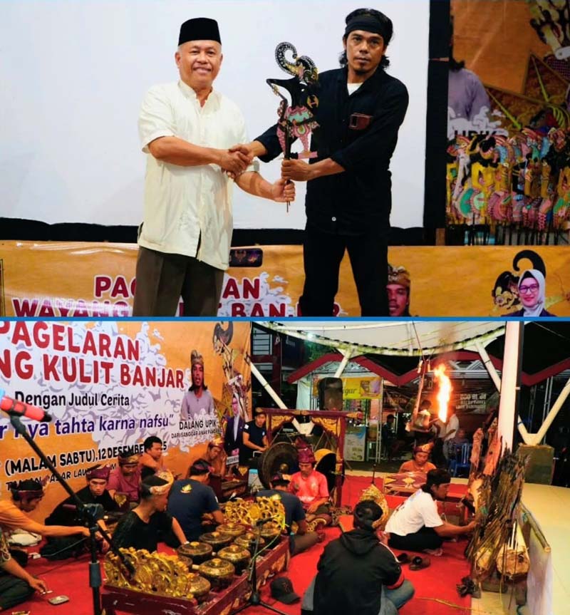 “Wayang Kulit Banjar bukan hanya tontonan, tetapi merupakan sarana pendidikan karakter yang menyampaikan nilai-nilai kehidupan dengan bahasa seni yang halus dan mudah diterima oleh siapa saja,” ujar Iwan saat membacakan sambutan Bupati.