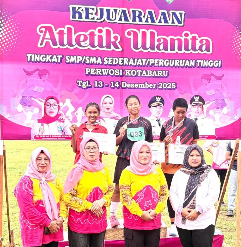 KOTABARU-Penasehat Persatuan Wanita Olahraga Seluruh Indonesia (Perwosi) Kotabaru, Suci Anisa Rusli resmi tutup Kejuaraan Atletik Wanita Tingkat SMP/SMA Sederajat dan Perguruan Tinggi, dalam rangkaian memeriahkan Peringatan Hari Ibu ke-97, yang berlangsung di Lapangan Stadion Bamega, Minggu (14/12/2025) lalu.