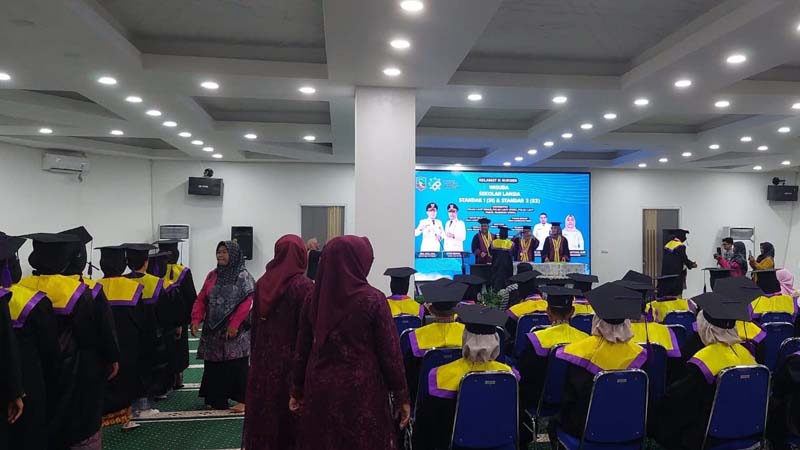 SEKOLAH LANSIA-Wisuda Sekolah Lansia Standar 1 (S1) dan Standar 2 (S2) Tahun 2025, bertempat di Aula Masjid Apung Kabupaten Kotabaru. (foto:mb/ist)
