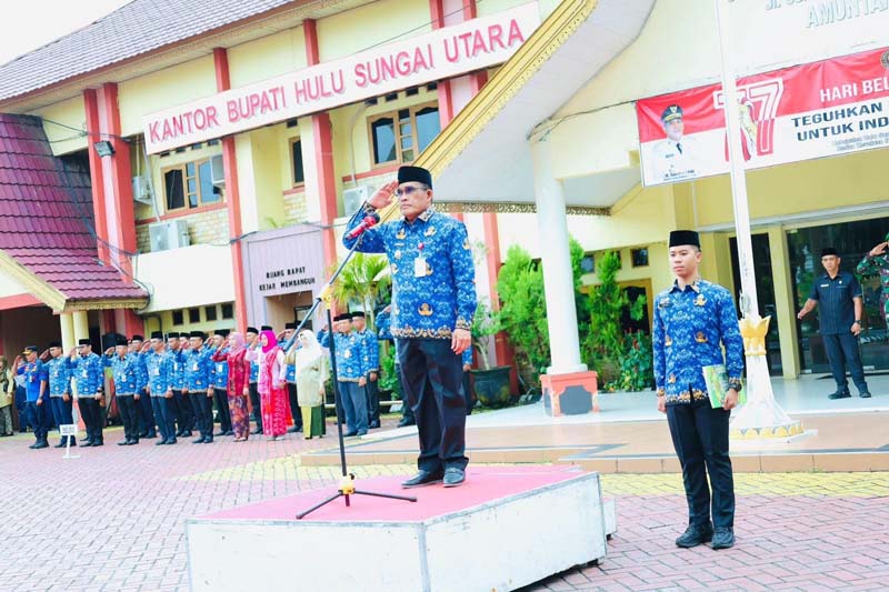 Bupati HSU H. Sahrujani membacakan Amanat Presiden Republik Indonesia dalam rangka Peringatan Hari Bela Negara ke-77. Mengawali amanatnya, Presiden Republik Indonesia menyampaikan puji dan syukur ke hadirat Allah SWT, Tuhan Yang Maha Esa, atas rahmat dan karunia-Nya sehingga seluruh rakyat Indonesia dapat memperingati Hari Bela Negara sebagai momentum penting untuk meneguhkan komitmen menjaga keutuhan, kedaulatan, dan persatuan bangsa.