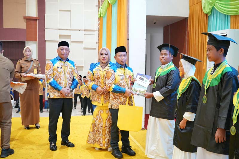 WISUDA-Bupati Tapin H Yamani bersama Wakil Bupati H Juanda dan Ketua TP PKK Hj Faridah Yamani saat melaksanakan wisuda santri BKPRMI ke XXXVI. (foto:mb/ist)