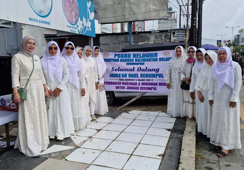 BANJARBARU- Dewan Pengurus Wilayah (DPW) Perempuan Bangsa Kalimantan Selatan berbagi ribuan makanan dan minuman gratis kepada Jamaah Sekumpul di 5 Rajab.