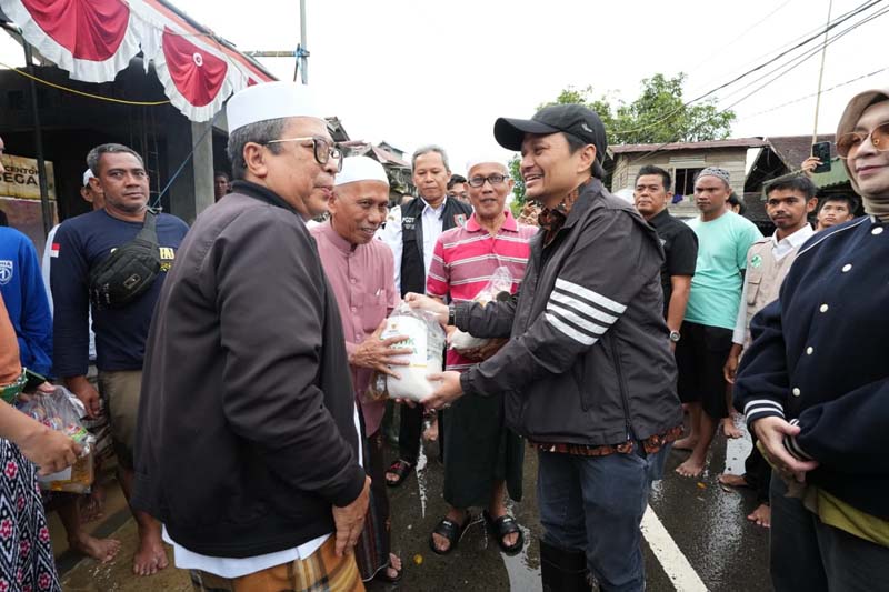 Di lokasi ini, Wagub tak segan menerobos genangan banjir dengan berjalan kaki untuk melihat secara langsung kondisi rumah warga yang masih tergenang, sekaligus menyapa dan berinteraksi dengan masyarakat setempat.