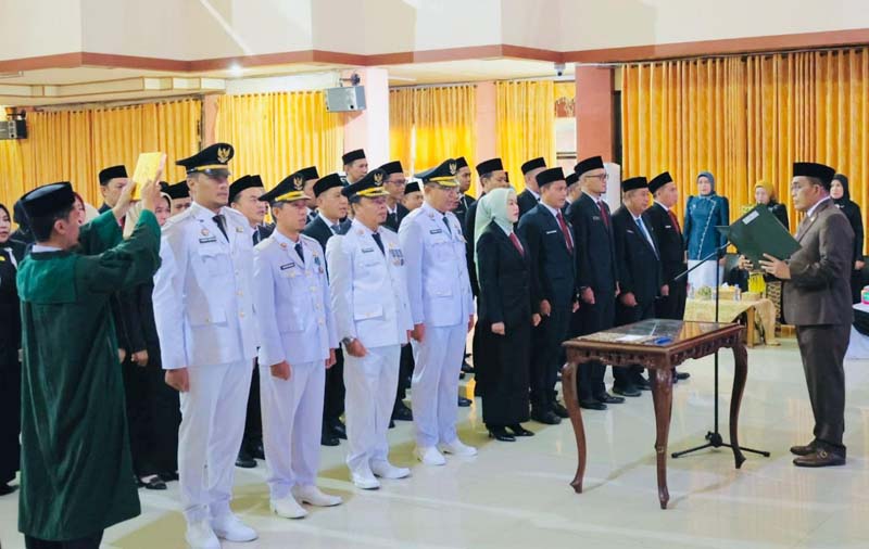 Pelantikan berlangsung dengan khidmat dan dihadiri oleh jajaran pimpinan daerah, kepala SKPD, serta tamu undangan lainnya. (suf/mb03)