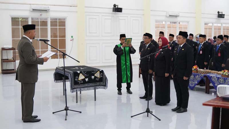 MARTAPURA- Pemerintah Kabupaten Banjar melaksanakan Pelantikan dan Pengambilan Sumpah /Janji Jabatan Pejabat Pimpinan Tinggi Pratama (PPTP), di Aula Badan Kepegawaian dan Pengembangan Sumber Daya Manusia (BKPSDM) Martapura, Senin (5/1) pagi.