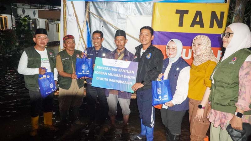 BANJARMASIN – Wali Kota Banjarmasin, H. M. Yamin HR, bersama Ketua TP PKK Kota Banjarmasin, Hj. Nelly Listriani, menyerahkan 100 paket sembako kepada warga terdampak banjir di Jalan Sungai Lulut Dalam, Simpang Layang, Kelurahan Sungai Lulut, Kecamatan Banjarmasin Timur, Selasa (06/01) malam.