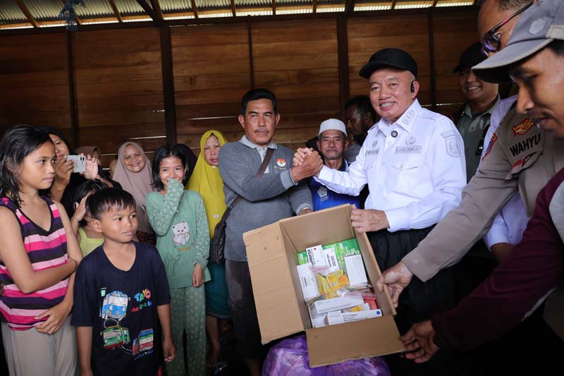 “Kami menyerahkan bantuan untuk warga yang terdampak banjir di sini, melalui Kepala Desa (pembakal) dan Ketua BPD, bukan hanya sembako yang kami salurkan, tapi juga obat-obatan dan perlengkapan bayi,” kata Muhidin.