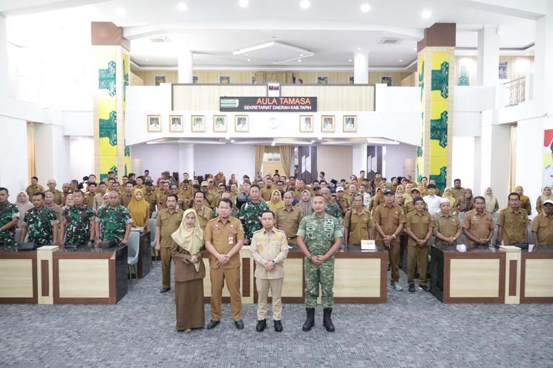RANTAU,- Bupati Tapin H Yamani bersama Dandim 1010 Tapin Letkol Inf Dimas Yamma Putra SSos, Kepala Dinas PMD Drs Rahmadi dan PLT Kepala Dinas Perindustrian Hj Nurul Kamariah pimpin rapat koordinasi percepatan pembangunan gerai koperasi desa dan kelurahan merah putih yang dihadiri seluruh Lurah dan kepala desa, bertempat di Aula Tamasa Kantor Setda Tapin, kemarin.